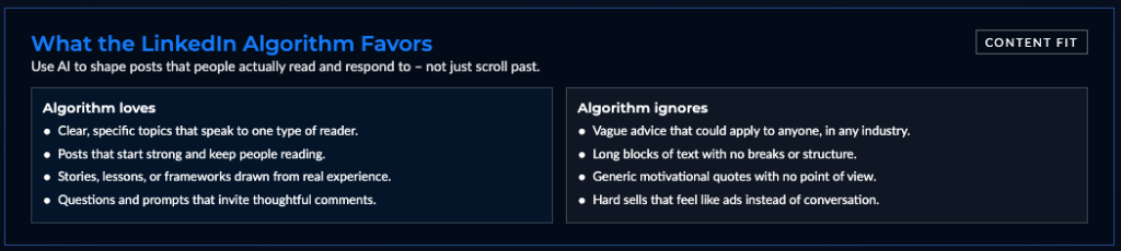 Your insights, your examples, your perspective are what matter. AI just helps you get them out of your head and onto LinkedIn without the blank page paralysis.