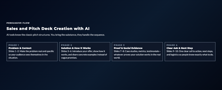 Good slides without good narrative still fail. AI can structure your content logically, but you need to ensure: