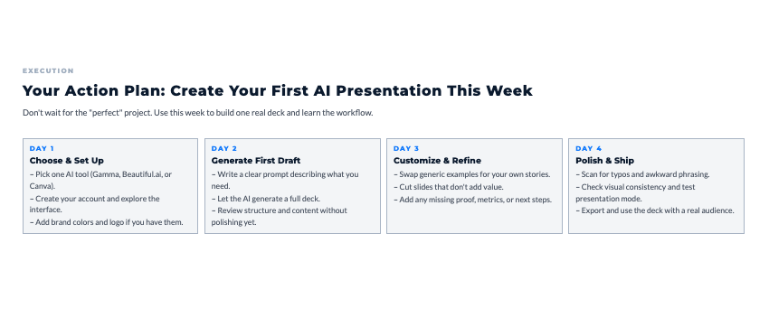 Your Action Plan: Create Your First AI Presentation This Week