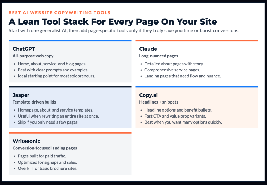 Let’s break down why website copy matters so much, which AI tools actually help, and how to use them without your site sounding generic.
